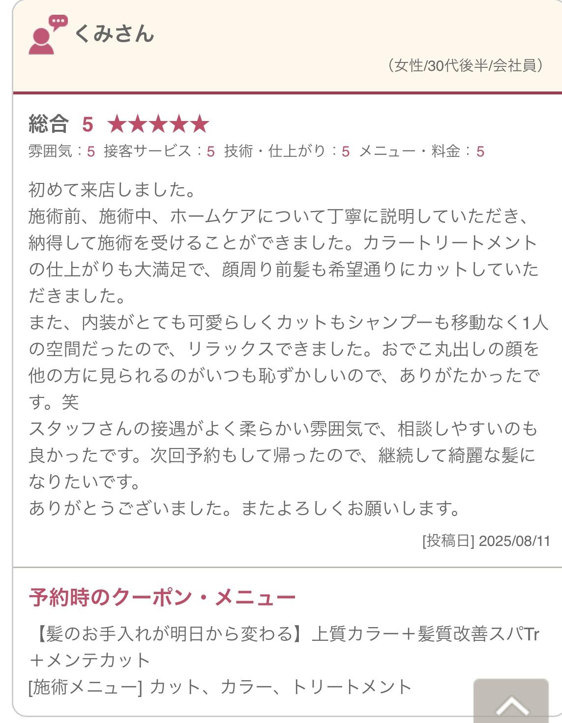 3ヶ月後、6ヶ月後の髪質変化を楽しみに、一緒に美髪への道のりを歩んでいきましょう。